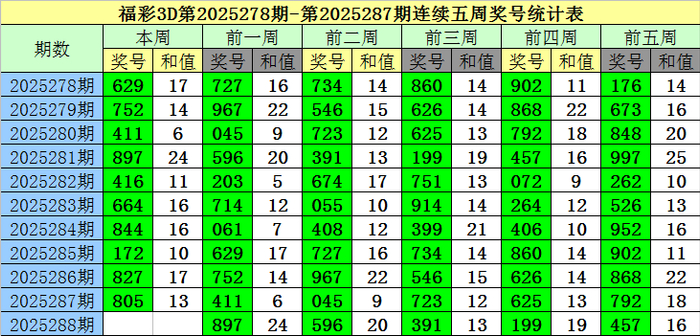 老梁福彩3D第2025288期抽象保举: