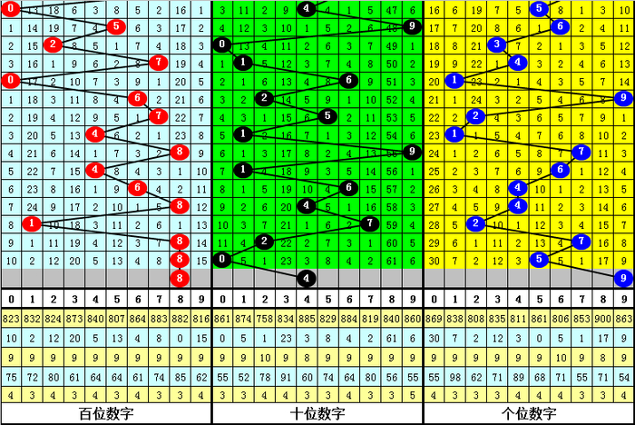 百位上期出现:热号8,该位连合十期以热号出现较多,以温号、冷号出现较少,当今百位热号有4个:1、4、6、8,本期看好开出热号再次出现,参考号码8。
