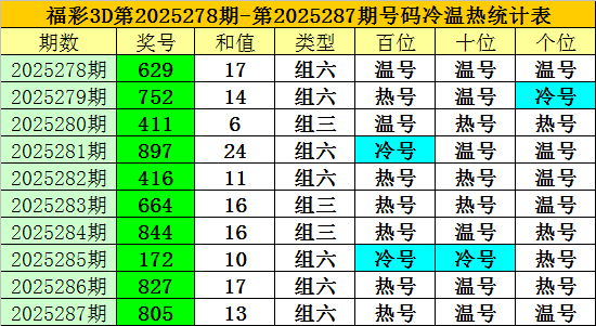 上期回归:福彩3D第2025287期开奖奖号为:805,奖号类型为:组六北京庄益通市政建设工程有限公司,奖号冷温热态为:热号+温号+温号。